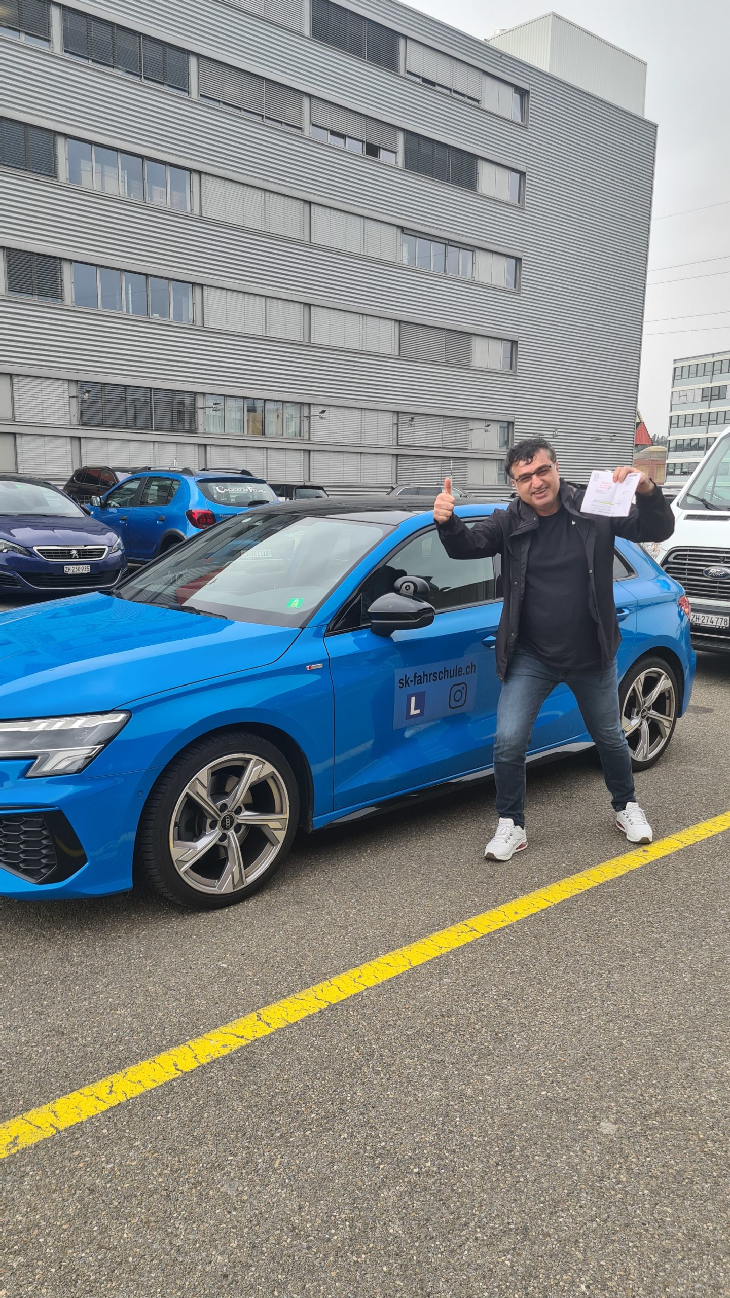 Ich kann nur sagen bester Fahrlehrer. Ich habe ungefähr im September 2023 mit Autoprüfung angefangen und hatte meine Fahrstunden bei bekannte Fahrschule in Zürich genommen. Ich habe so viele Fahrstunden gemacht und so viel für die Fahrstunden bezahlt schlussendlich habe ich die praktische Prüfung 2x nicht bestanden (war mein Fehler, da ich sehr nervös war). Mein alte Fahrlehrer wollte mich für die 3. praktische Prüfung erst in 3-4 Monate anmelden und er hat empfohlen noch mehr Fahrstunden zu machen, damit er mich für die praktische Prüfung anmelden kann. Da ich im private nicht viel Möglichkeit hatte mit jemanden zu fahren musste ich also mehr Fahrstunden nehmen und bezahlen. Ich habe die SK Fahrschule zufällig auf TikTok gesehen habe die Videos angeschaut und dachte: "ja warum nicht bei ihm versuchen." Das war die beste Entscheidung meines Lebens. Salman hat mich direkt für die 3. praktische Prüfung angemeldet wir sind paar Mal zusammen gefahren und ich habe heute die Prüfung bestanden. Salman ist sehr geduldig, zielorientiert, ruhig, humorvoll, sympatisch und kompetent. Er nahm sich sehr viel Zeit und gab mir sehr gute Tipps beim fahren. Man kann bei ihm spüren, dass er mit Leidenschaft macht und will auch das du die Prüfung bestehst. Dankeschön Salman :)